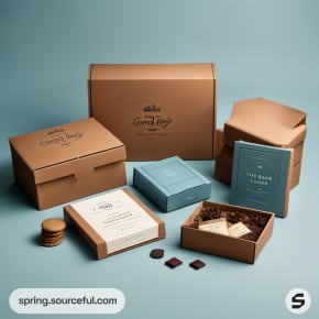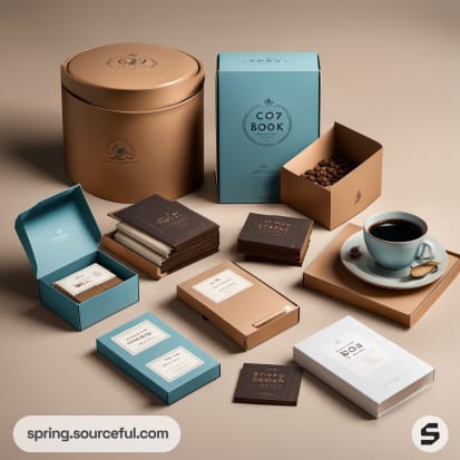 Elegant coffee and chocolate gift boxes with a rustic design.