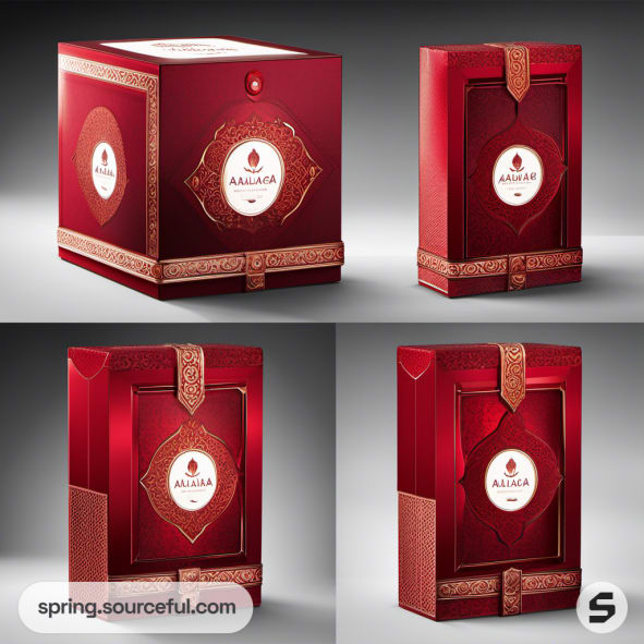 Luxury red and white boxes with ornate decorative patterns.
