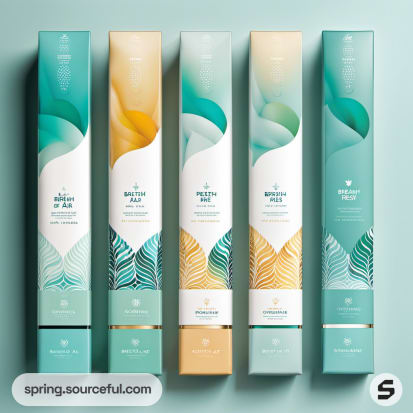 Discover the perfect blend of Bohemian, Art Deco, and Minimalist aesthetics in our tooth whitening and sparkling toothpaste packaging designs. Our aquamarine color scheme evokes a fresh, clean feeling, perfect for oral care products. Get inspired by our unique packaging types that not only protect the product but also enhance its appeal. Make your toothpaste stand out on the shelf with our innovative and stylish packaging designs.