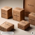 Two kraft boxes, one large, one flat, with leaf motifs.