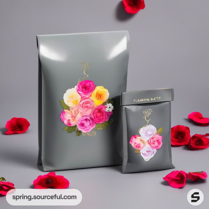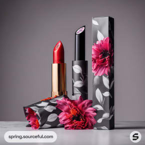 Discover the perfect blend of glamour and sustainability with our lipstick packaging inspiration, featuring recycled mailer bags in a chic black and light gray color scheme. Experience the vibrant, luxurious, and bold aesthetic that adds a fun twist to your beauty routine. Our design incorporates natural elements with a floral touch, making it an eco-friendly yet stylish choice. Explore our unique lipstick packaging ideas that are as bold and vibrant as you are.