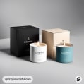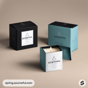 Three candle boxes in black, teal, and beige against neutral background.