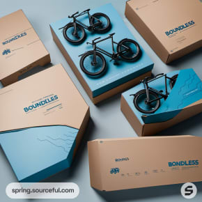 Boxes with 'Bondles' branding and bicycle graphics, in beige and blue.