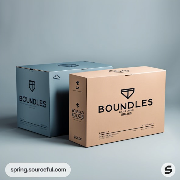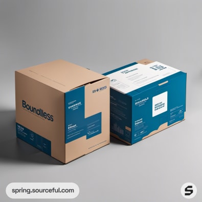 Two cardboard boxes with 'Boundless' branding, featuring blue accents, on a gray background.