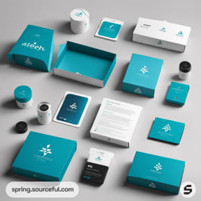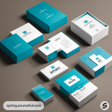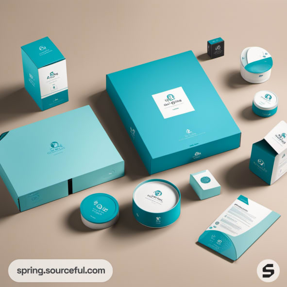 Turquoise and white product packaging collection.
