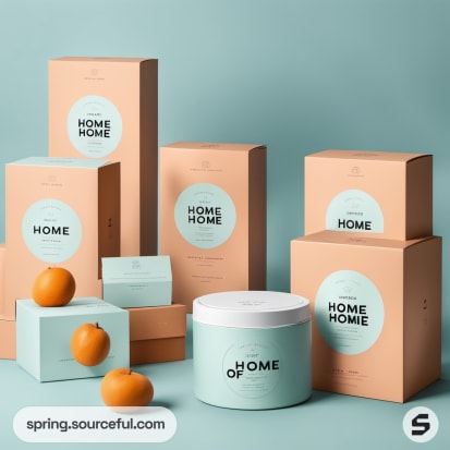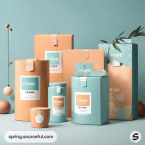 Discover chic, cute, and fun packaging inspiration for homeware products that will captivate your customers. Explore a variety of packaging types, all designed with a soothing color scheme of aqua, baby blue, and apricot. Our design brief provides innovative ideas to make your homeware packaging stand out. Elevate your brand with our unique and stylish packaging designs that perfectly blend functionality and aesthetics.