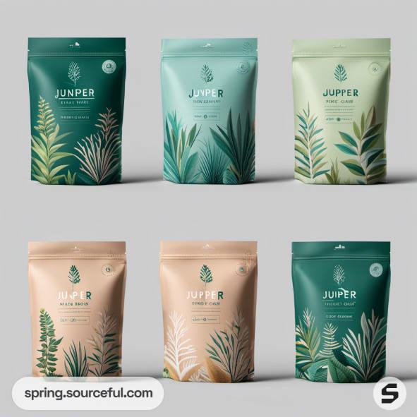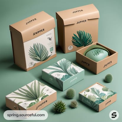 Tall and small boxes with elegant plant illustrations and neutral colors.