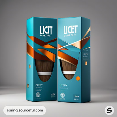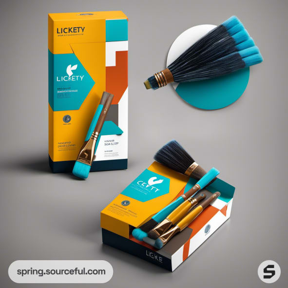 Turquoise and brown brush set with box packaging featuring geometric design.