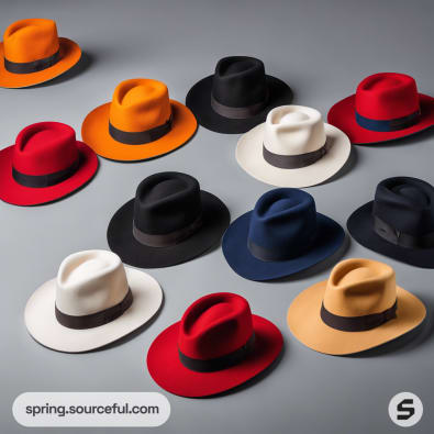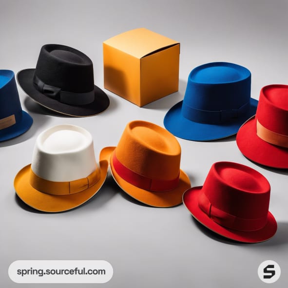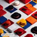 Discover the allure of our Luxury Felt Hats, handcrafted in France, presented in elegant shipping boxes that reflect their high-end appeal. Our packaging, featuring a bold color scheme of red, yellow, orange, white, black, and blue, adds a fun yet minimalist touch to the unboxing experience. Immerse yourself in the luxurious aesthetic of our product, where every detail is meticulously designed for your satisfaction. Let our packaging inspiration guide you to a world of elegance and sophistication.