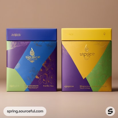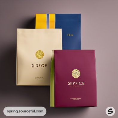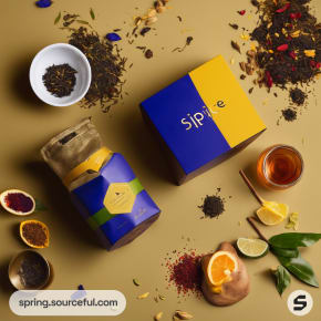 Discover luxurious and handcrafted tea packaging inspiration with our vibrant yet minimalist designs. Our paper mailer bags, in a rich palette of royal blue, yellow, light green, and more, encapsulate elegance and sustainability. Experience the fusion of light brown, light orange, and gold hues that add a touch of opulence to your tea packaging. Make your product stand out with our sustainable, elegant, and vibrant tea packaging designs.