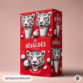 Ice cream box set with cone and tiger graphics on bold red packaging.