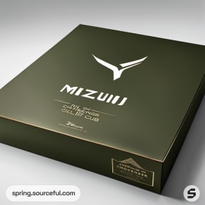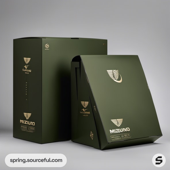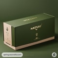 Green and beige box with minimalist design and elegant logo.