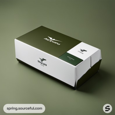 Green and white box with a modern and minimalist design.