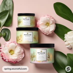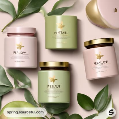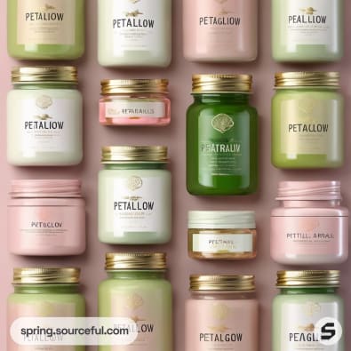 Discover chic and retro-inspired packaging designs for skin care products, specifically tailored for jars. Our aesthetic blends pastel tones of cream, pink, and apple green, accented with touches of gold for a classic, natural look. Get inspired by our unique packaging ideas that not only protect your skin care products but also enhance their appeal. Elevate your brand with our stylish, eco-friendly packaging solutions that resonate with today's conscious consumers.