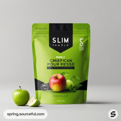 Green resealable pouch with minimal apple graphics.