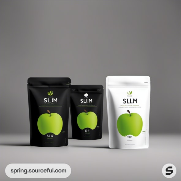 Black and white resealable pouches with green apple design.