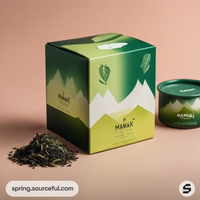 Discover the perfect blend of modern minimalism and vibrant aesthetics with our loose-leaf tea bag packaging inspiration. Our paper mailer bags, featuring a bold and elegant color scheme of dark green, light green, white, and yellow, are designed to capture the natural essence of your tea. With a unique blend of Art Deco, pastel, and gradient elements, our packaging design is as refreshing and invigorating as the tea it holds. Explore our illustrative and eco-friendly packaging solutions that perfectly balance elegance and functionality.