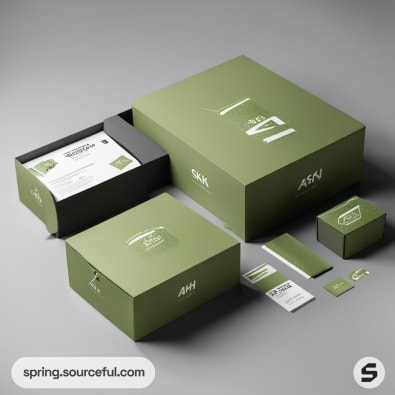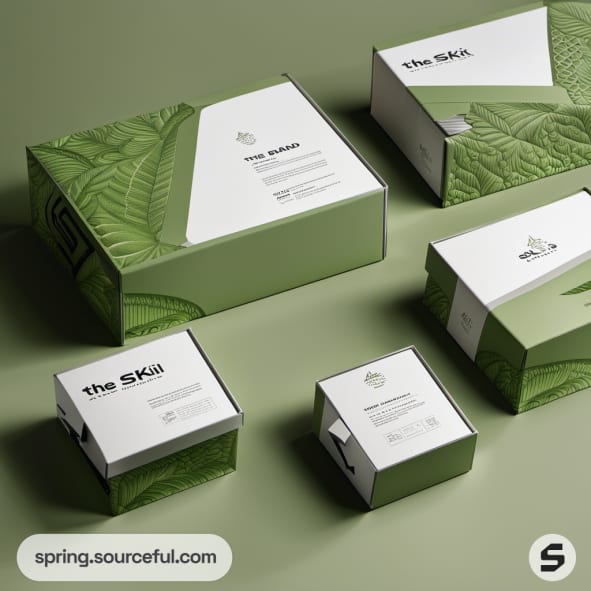 Green mailer boxes with leaf texture, varying sizes.