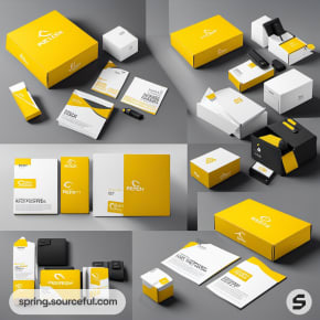Black, yellow, and white assorted packaging boxes.