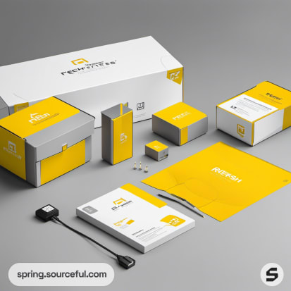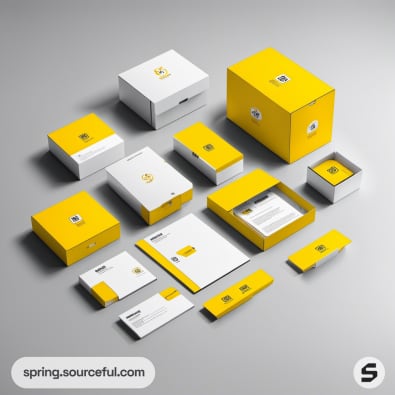 Yellow and white branded packaging collection.