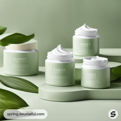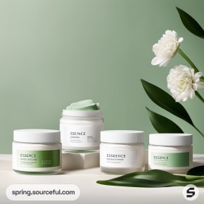 Discover the perfect packaging inspiration for skin care products designed for sensitive skin. Our minimalist and spa-like aesthetic, featuring calming white and green color schemes, is sure to appeal to your target audience. The design focuses on the use of jars, a popular choice for skin care packaging. This packaging design not only ensures product safety but also adds a touch of elegance and sophistication to your skin care line.