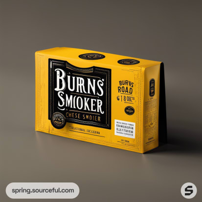 Yellow rectangular packaging with vintage graphics and bold black text.