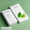 Leaf-themed minimalist white boxes on a green background.