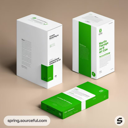 White box with green accents displaying minimalistic design.