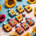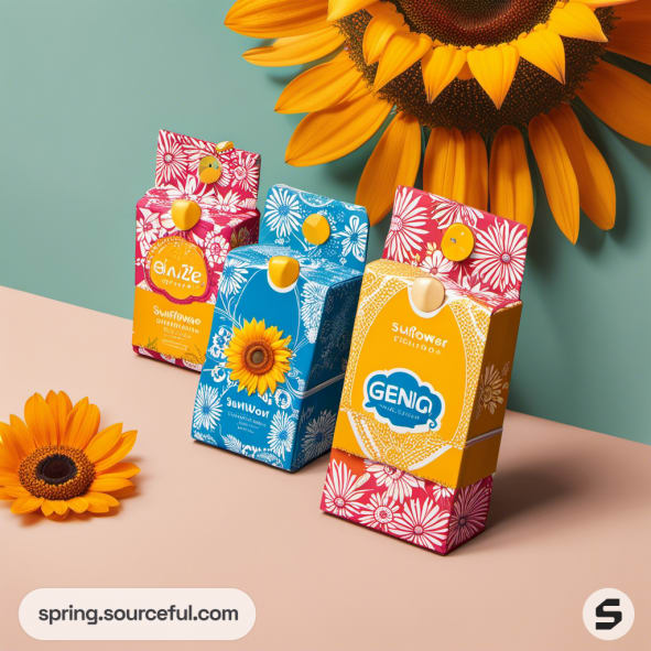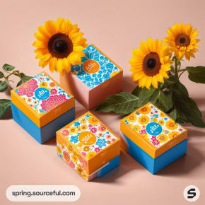 Colorful gift boxes adorned with sunflowers and floral patterns.