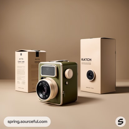 Vintage-style camera and boxes in beige with minimalist design.