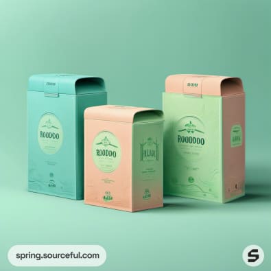 Teal and green mailer boxes with leaf designs