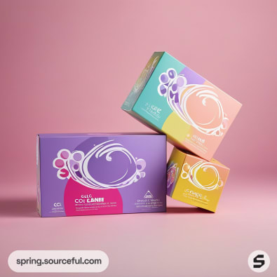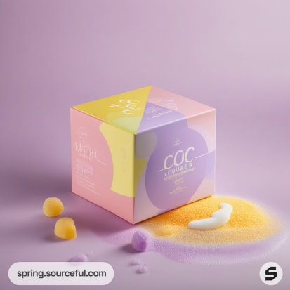 Discover the perfect blend of modern and vibrant aesthetics with our liquid bathtub scrub cleaner packaging inspiration. Our mailer box design features a pastel color scheme, including shades of white, pink, violet, apricot, cream, purple, and yellow. The geometric patterns and bubble motifs add a playful touch to the packaging, making your cleaning routine more enjoyable. Explore our unique and eye-catching packaging designs that perfectly encapsulate the essence of a fresh, clean bathtub.