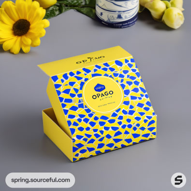 Discover classic and chic packaging inspiration for stickers with our unique mailer box designs. Our color scheme of black, light yellow, and royal blue adds a sophisticated touch to your sticker packaging. Enhance your brand's aesthetic with our stylish and timeless designs. Make your stickers stand out with our high-quality, beautifully designed mailer boxes.