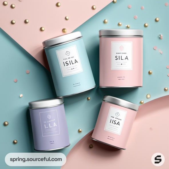 Four pastel tins arranged on a dual pastel background.