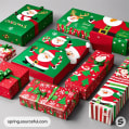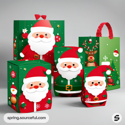 Green and red Christmas gift boxes with Santa designs.