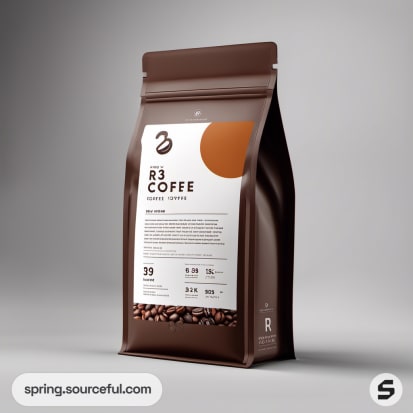 Matte brown coffee pouch with simple round white label.