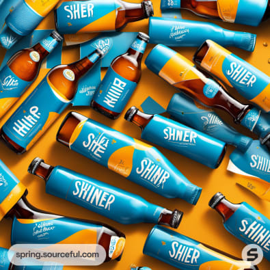 Assorted orange and blue beer bottles scattered
