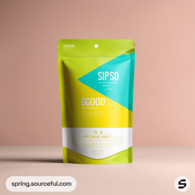 Colorful resealable pouch labeled SIPSO on a beige background.