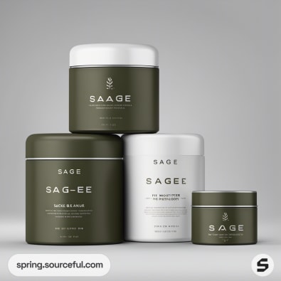 Two dark green cylindrical jars with labels.