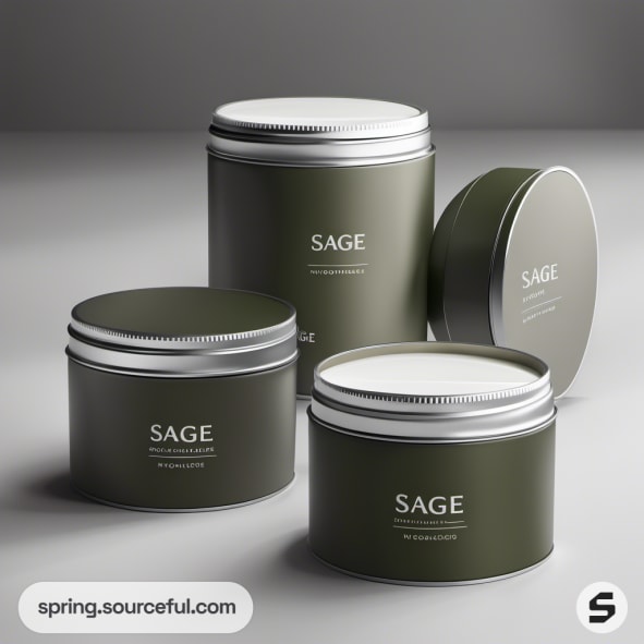 Three olive green tins with silver rims.