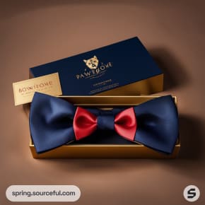 Discover the perfect packaging inspiration for your luxurious dog bowties with our handcrafted, vintage-styled mailer boxes. Our sophisticated design features a rich color scheme of navy blue, Venetian red, and satin sheen gold, exuding an air of elegance. These mailer boxes not only ensure the safe delivery of your product but also enhance the unboxing experience for your customers. Elevate your brand with our vintage, luxurious packaging solutions for dog bowties.