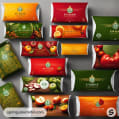 Assorted vegetable-themed pillow packs in various colors and designs.