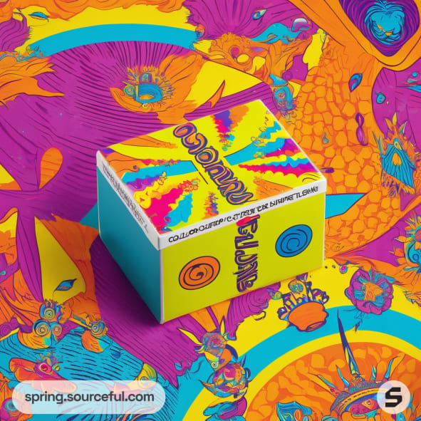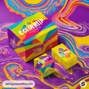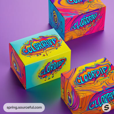 Discover the perfect packaging inspiration for your psychedelic t-shirt brand with our vibrant, retro, and edgy product carton box designs. Our color scheme of yellow, red, orange, blue, green, and violet will make your brand pop and stand out. With a fun, futuristic, illustrative, and hipster aesthetic, we ensure your packaging will be as unique as your t-shirts. Let us help you create a memorable unboxing experience for your customers.
