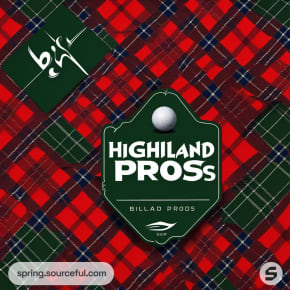 Red tartan box with golf balls displayed and text 'Golff Pros'.