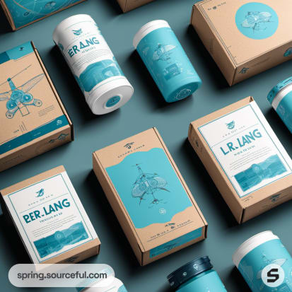 Assorted teal and kraft paper packages with drone illustrations.