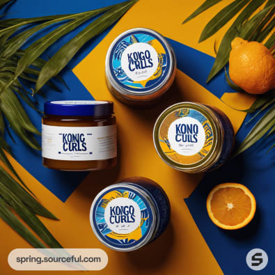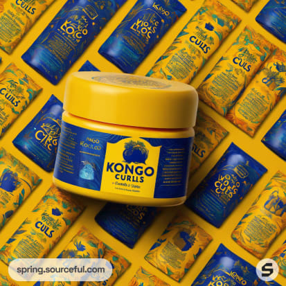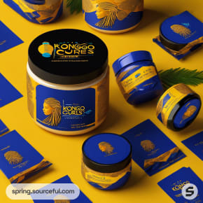 Discover the perfect packaging inspiration for your Dreadlock hair cream, presented in handcrafted jars that exude a vibrant and luxurious aesthetic. Our color scheme blends the warmth of Yellow Orange with the depth of Sapphire Blue, creating a visually appealing contrast. This design not only ensures your product stands out on the shelf but also resonates with the unique style of your dreadlock-loving customers. Elevate your brand with our packaging design that perfectly encapsulates the essence of your high-quality hair cream.