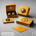 Assortment of gold packaging boxes and ring.