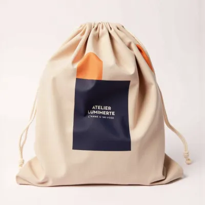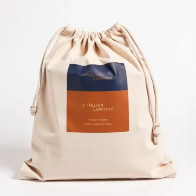 Drawstring bag packaging for Atelier Lumière