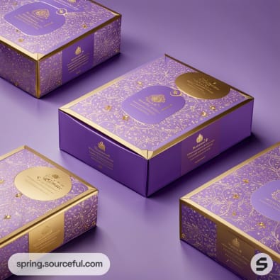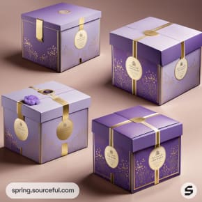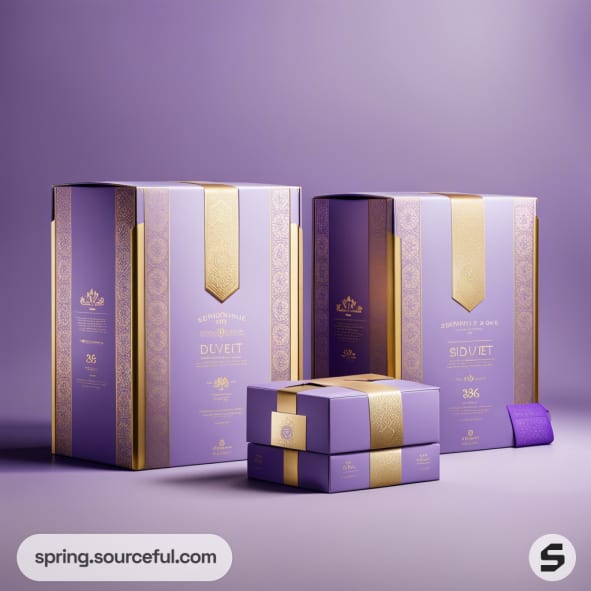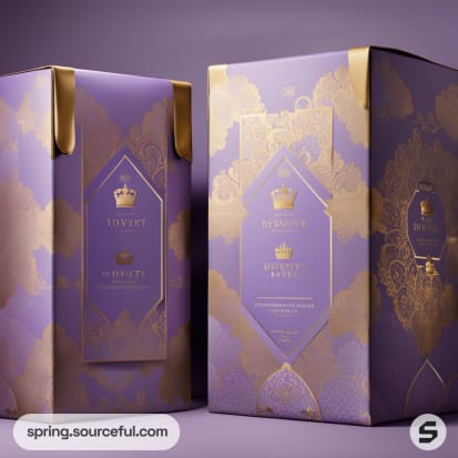 Discover the perfect blend of playful, royal, and heritage aesthetics in our lilac and gold shipping boxes, designed to house our duvets for sensitive skin. Our packaging inspiration draws from a regal color scheme, ensuring your product arrives in style. Experience the joy of unboxing a duvet that's gentle on your skin, wrapped in a package that's a treat to the eyes. Our design brief showcases how we prioritize both product quality and packaging appeal.