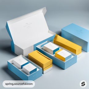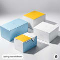 Yellow and blue folding carton boxes with simple design on a white surface.